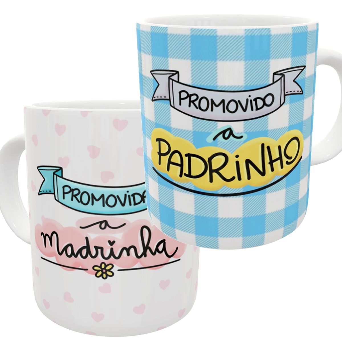 Kit c/2 canecas promovidos a padrinho madrinha presente