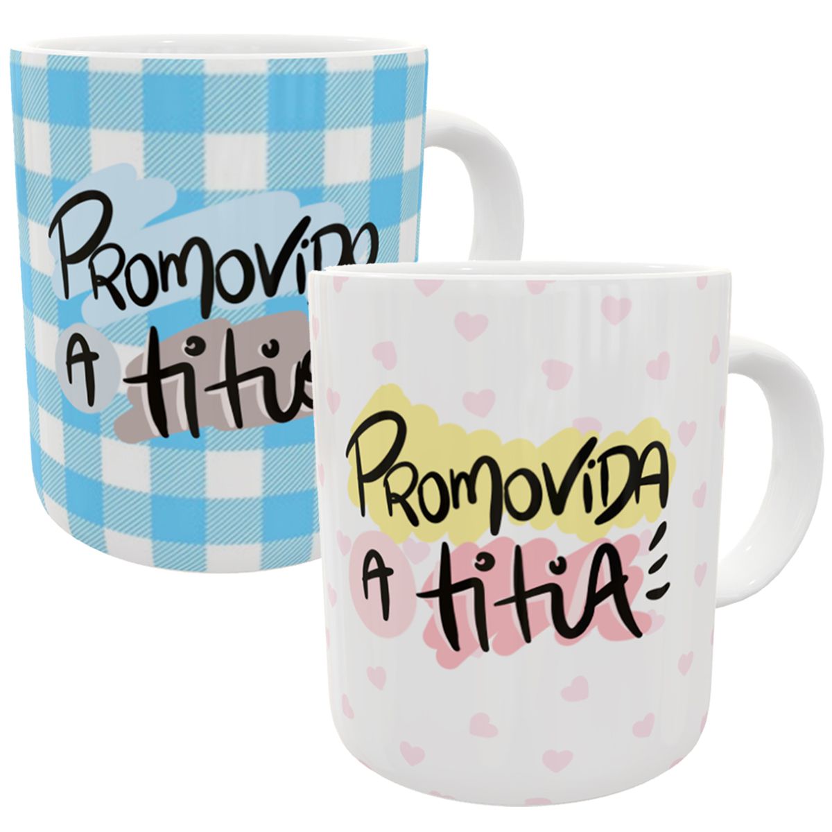 Kit c/2 canecas promovidos a titio titia presente familia